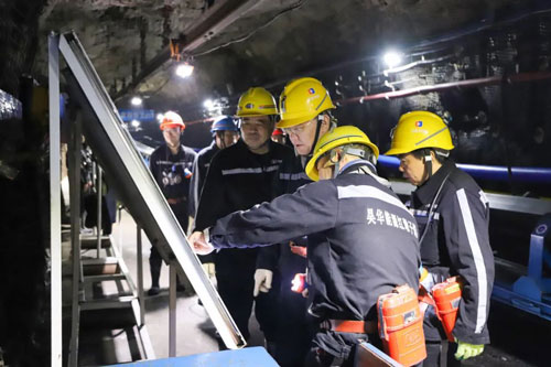姜帆深入红一煤矿1150401首采工作面施工现场,对工作面设备装备、地质条件、采煤工艺以及劳动组织等情况进行实地调研,并现场观看综采工艺流程。